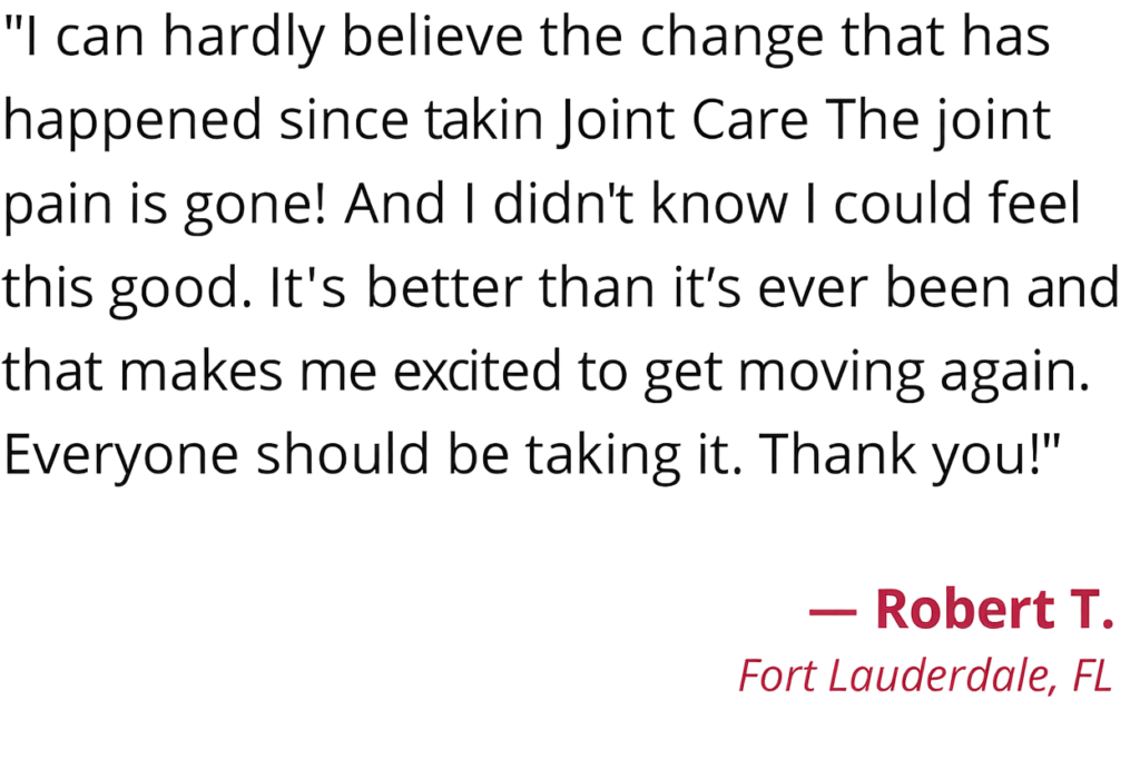 Users consistently described Joint Care as the only product that truly made a lasting difference.